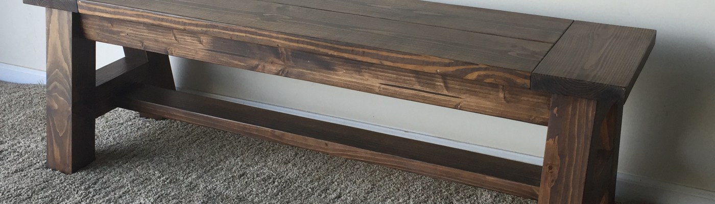 Bench with A frame ends Bench with A frame ends. 5 feet long, 17 inches high and 14.5 inches wide. Share this: Click to share on X (Opens in new window) X Click to share on Facebook (Opens in new window) Facebook Like Loading... Related