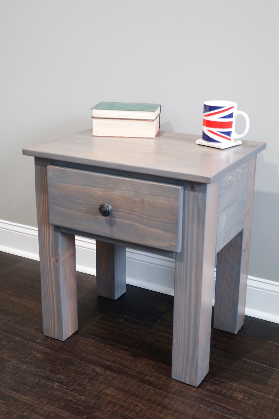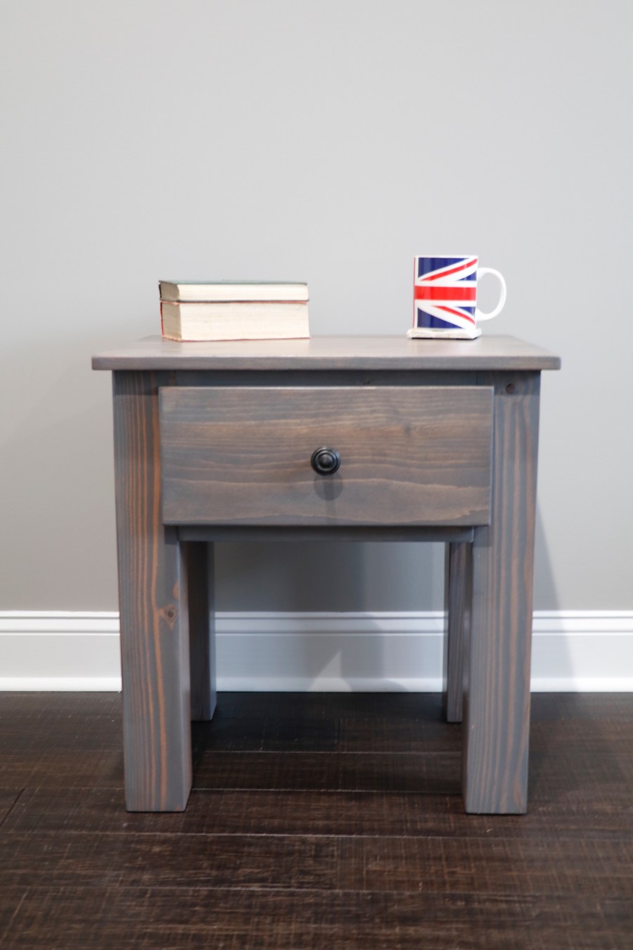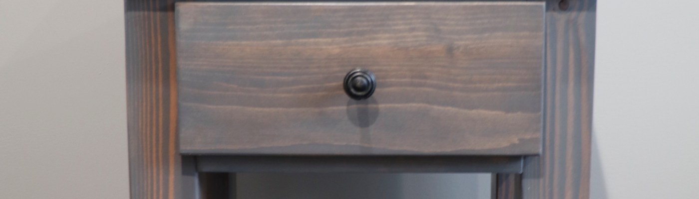 Nightstand 23 inches wide by 17.5 inches deep and 24.5 inches high. Stained in own mix of stain. Share this: Share on X (Opens in new window) X Share on Facebook (Opens in new window) Facebook Like Loading... Related