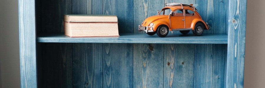 Bookcase to match the blue nightstand I recently made.  48 inches tall by 34 inches wide by 14 inches deep. Finished in Varathane Worn Navy