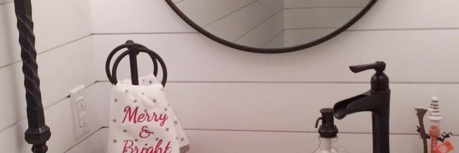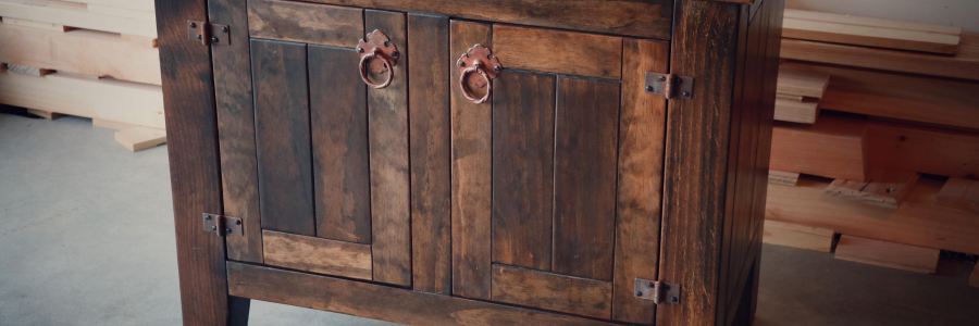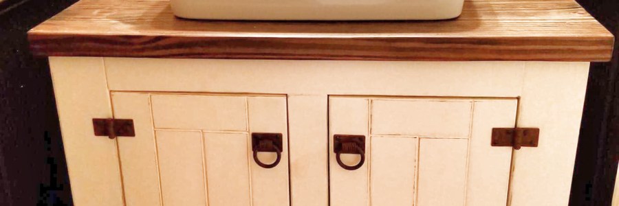 White vanity with top stained in Espresso.  Customer sent me image with their copper sink and antique style faucet installed.