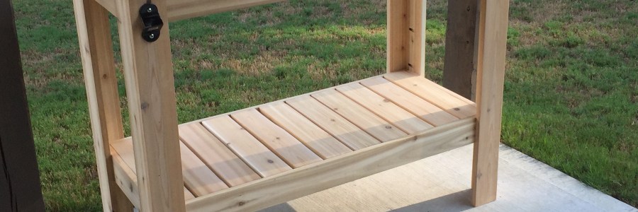 Grilling table made from 1 by 4 and 1 by 6 Cedar.  Reused a bottle opener off an old grill as well.