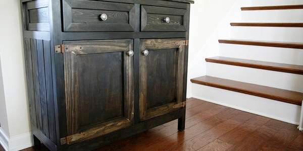 Entry way cabinet with two drawers, two doors and shelf. Two versions shown here to show how different wood takes the stain totally differently. This is one of my premium plans and is available for download on Sprucdmarket via this link : https://www.sprucdmarket.com/plans/entrance-cabinet/